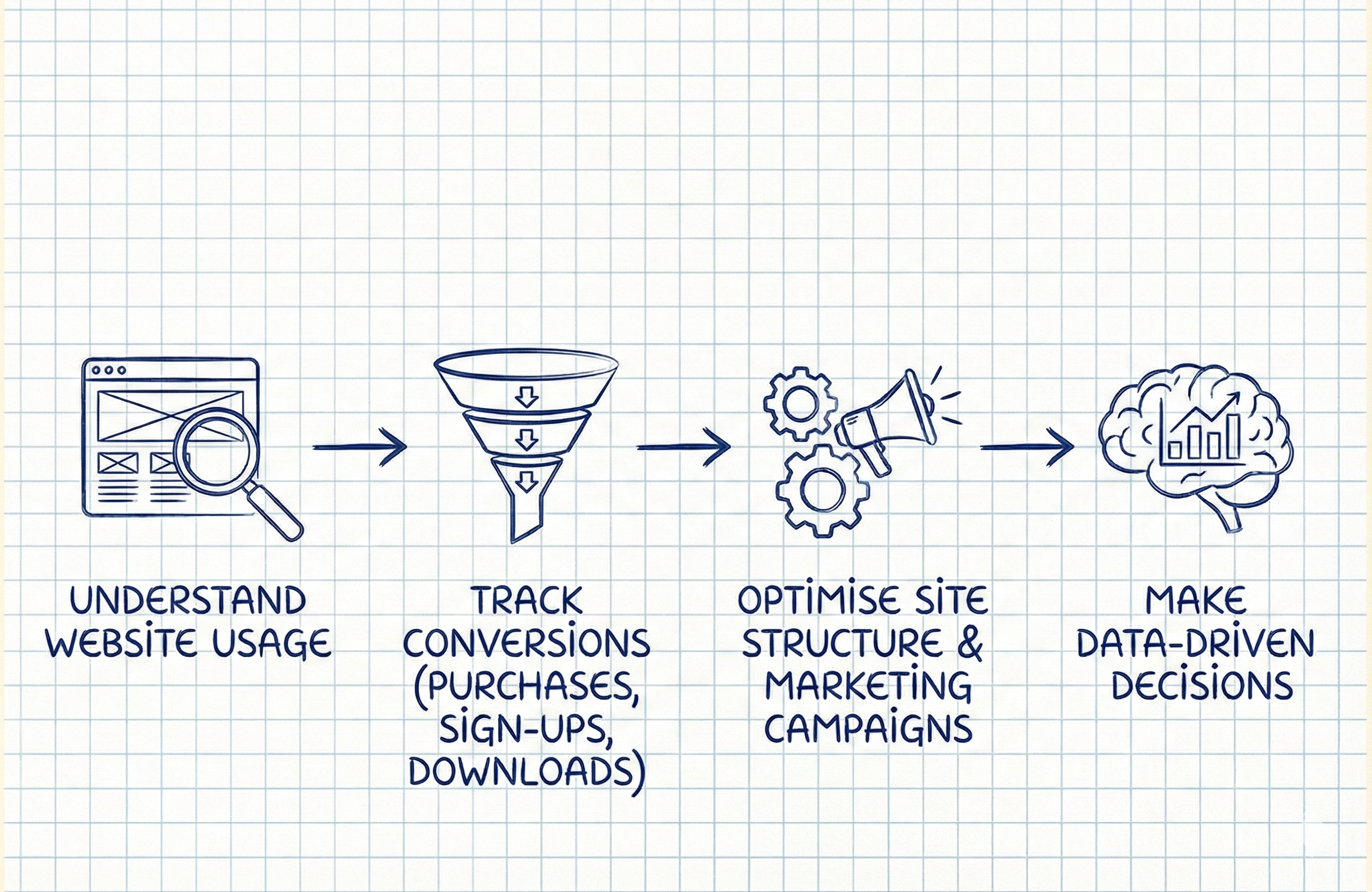 Web analytics is the collection, measurement, analysis, and reporting of website data to understand and optimise web usage.