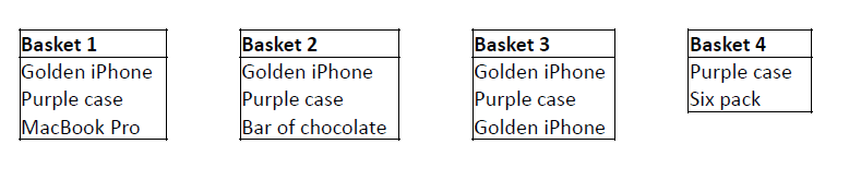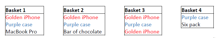 Example: Calculate the confidence of Golden iPhone \(\rightarrow\) Purple Case.